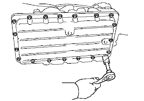 HINT: Remove all packing material and be careful not to drop oil on the contact surfaces of the transmission case and oil pan.