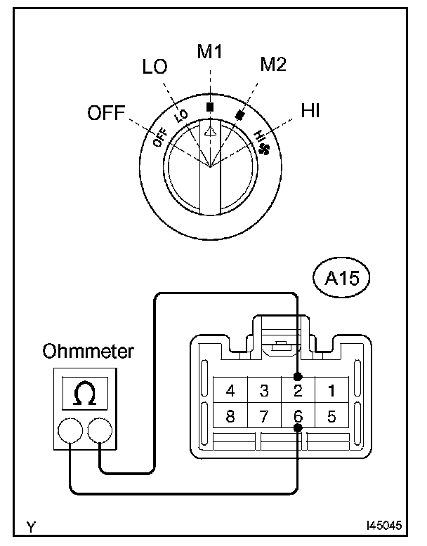 1. Using an ohmmeter, measure the resistance and check the results in accordance with the values in the table