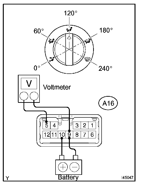 2. Connect the positive (+) tester probe of a voltmeter to terminal 5 (MSET) and the negative (-) tester probe to terminal 9 (GND), then check the voltage.