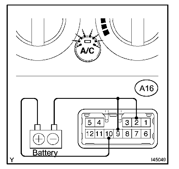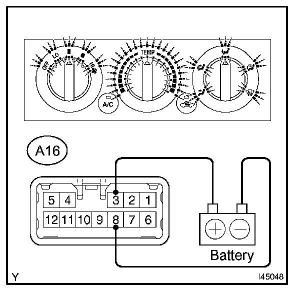 3. Under the above condition, connect the positive (+) lead from the battery to terminal 3 (ILL+) and then check that the indicator dims.