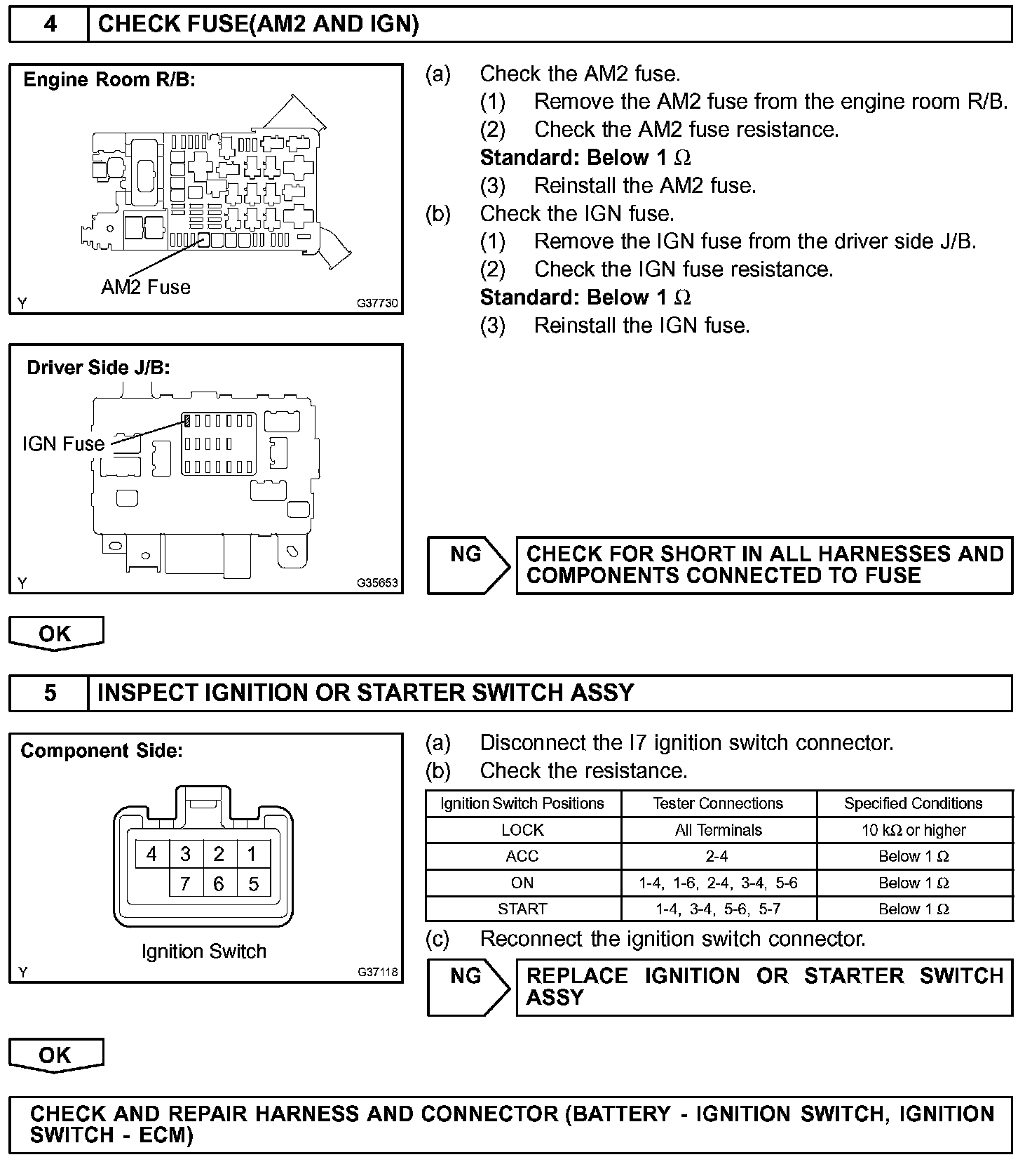 When the ignition switch is turned to ON, the battery voltage is applied to terminal IGSW of the ECM. The ECM MREL output signal causes a current to flow to the coil, closing the contacts of the EFI relay and supplying power to terminal +B of the ECM.