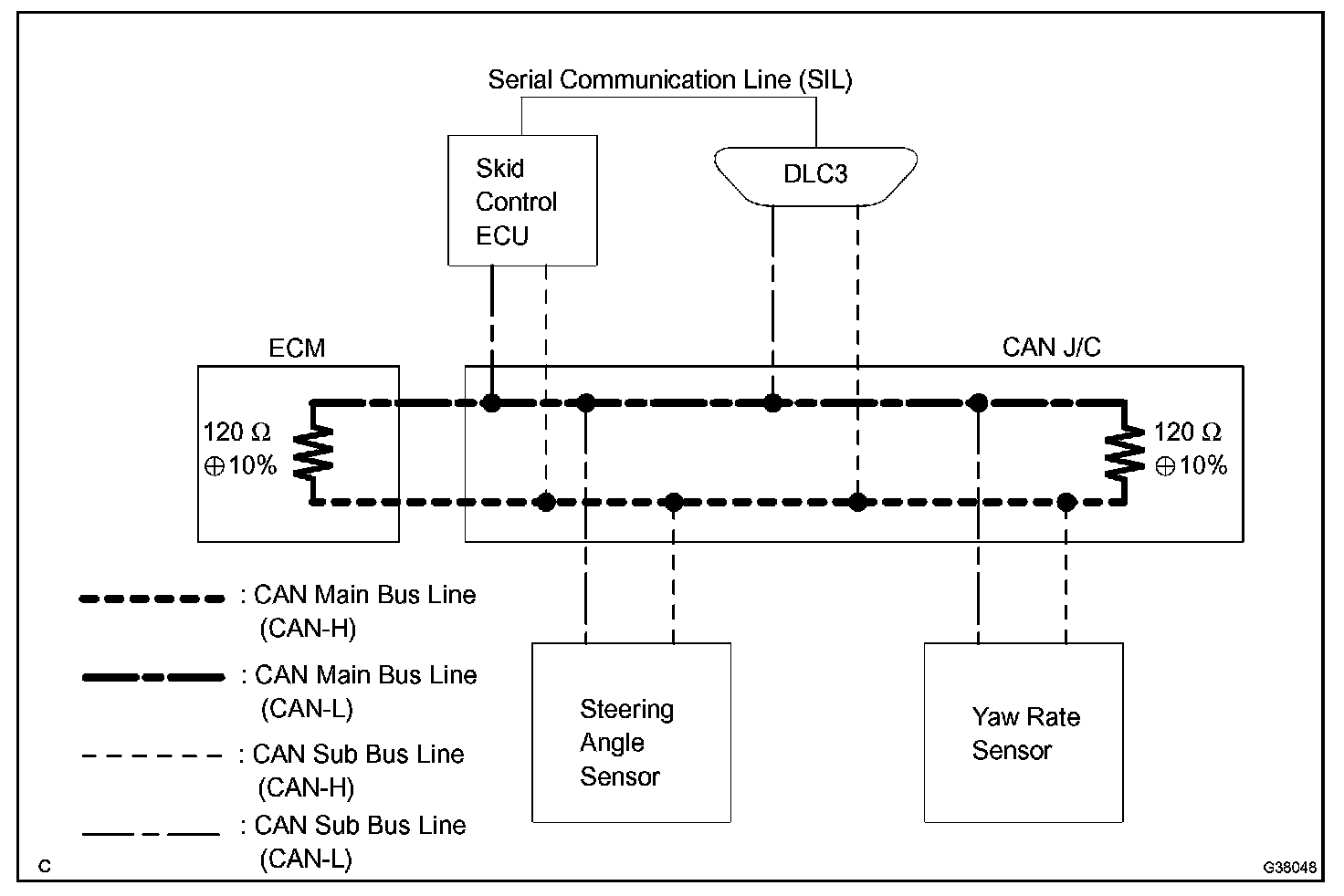 b. The CAN communication system cannot detect trouble in the DLC3 sub bus line even though the DLC3 is also connected to the CAN communication system.