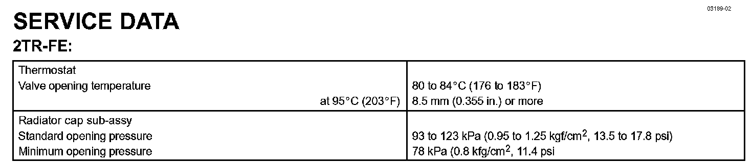 Cooling - Service Data: