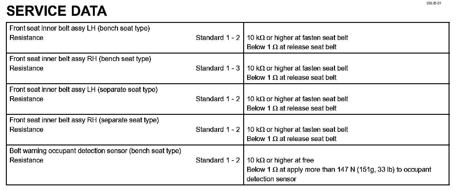 Seat Belt - Service Data:
