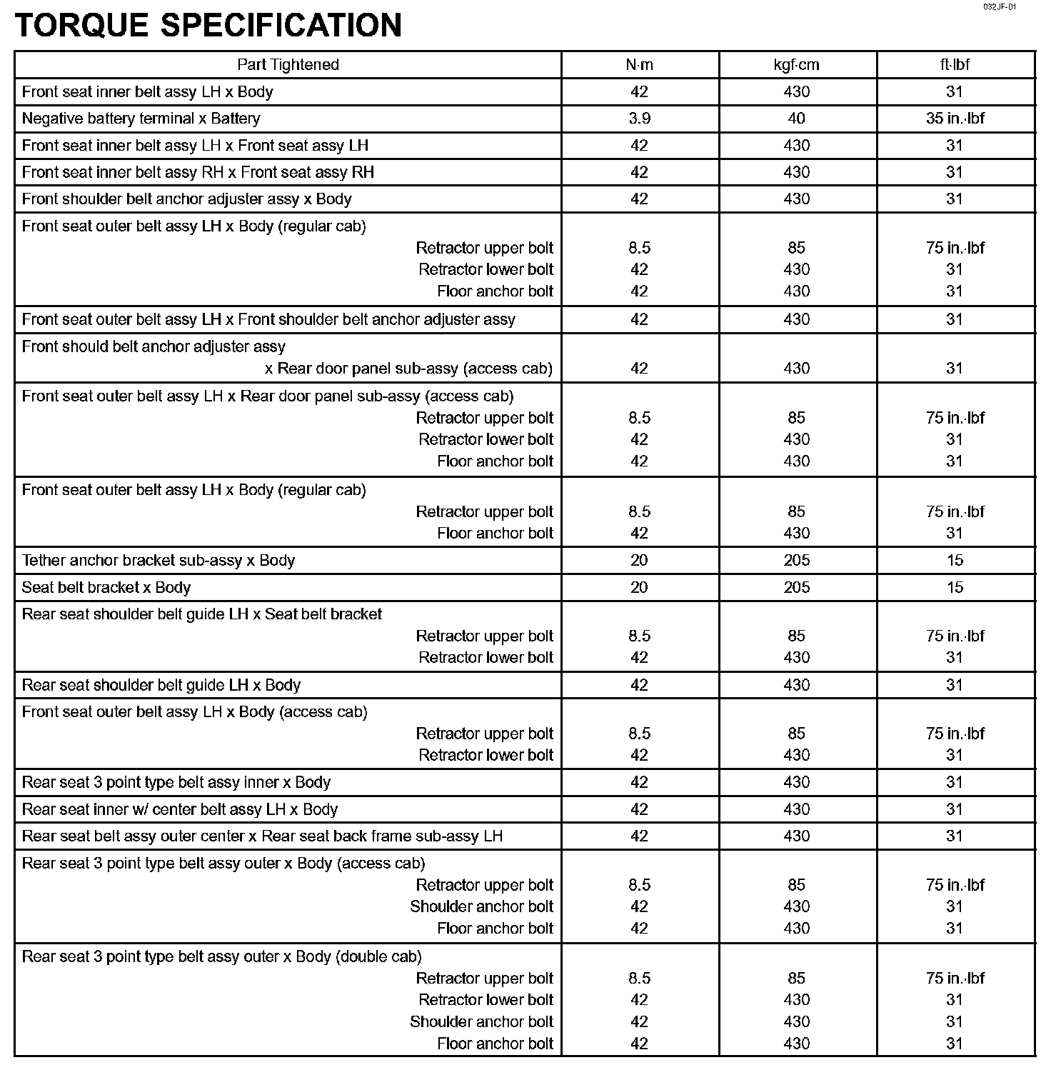 Seat Belt - Torque Specification: