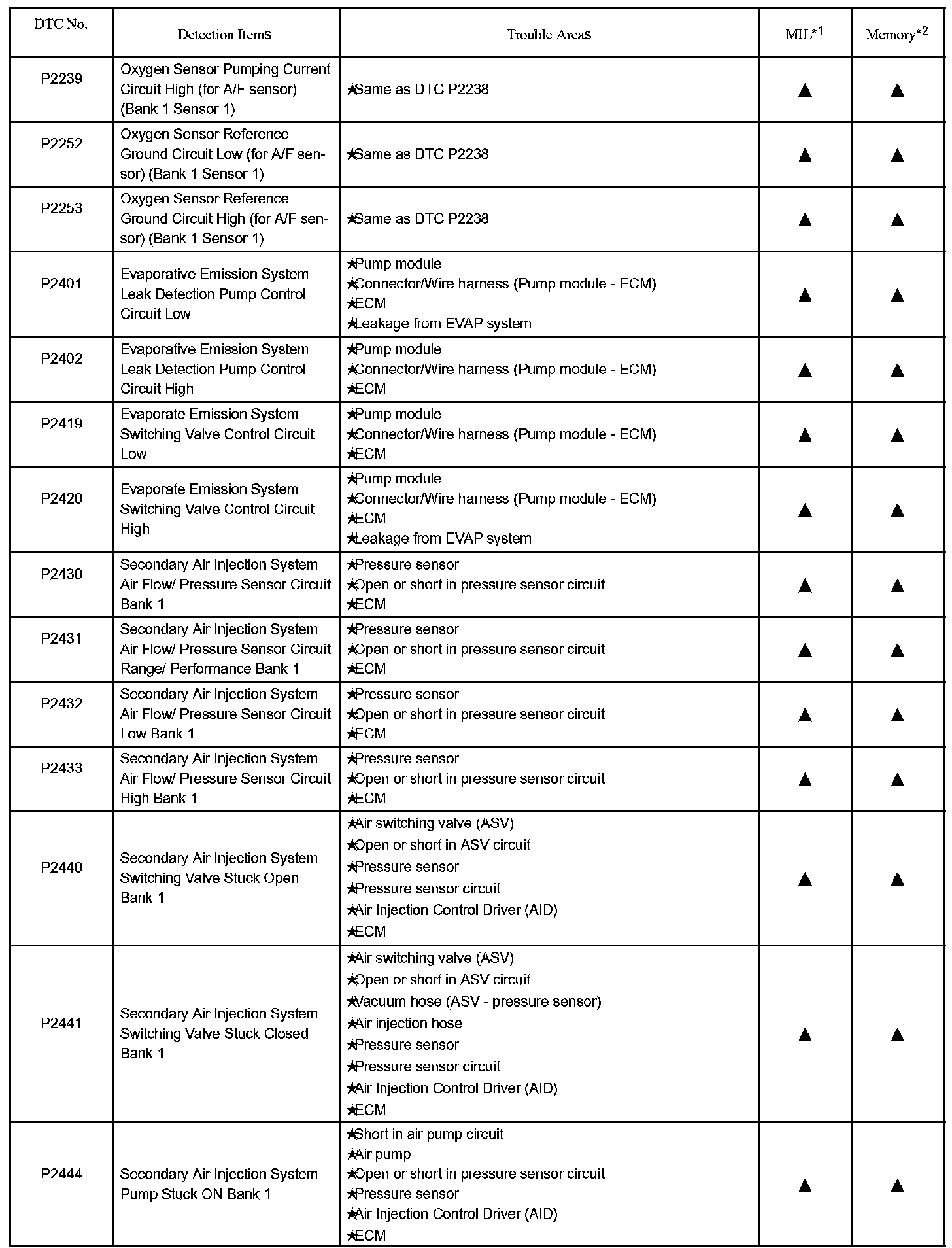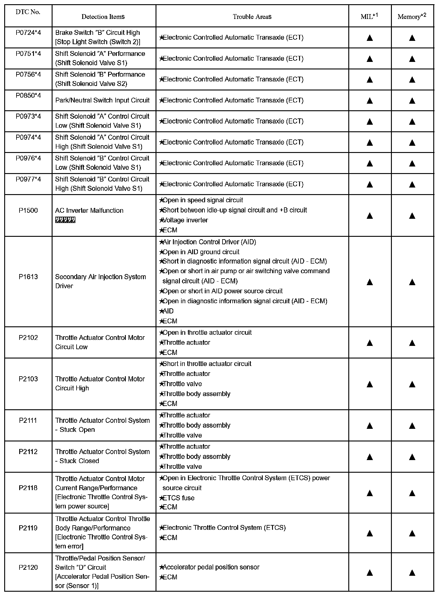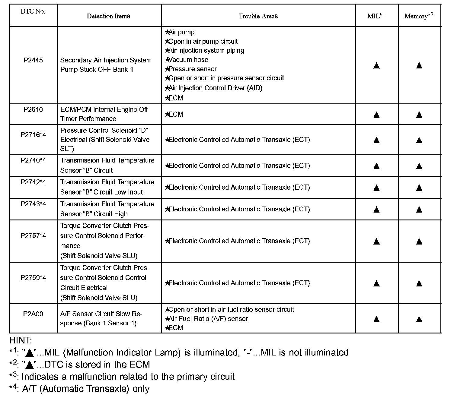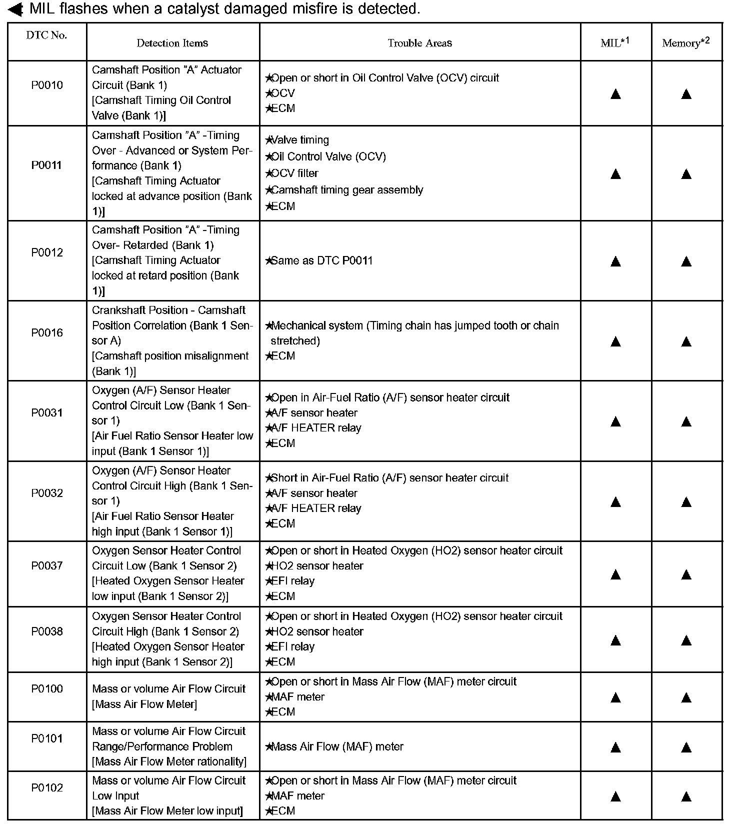 DIAGNOSTIC TROUBLE CODE CHARTP0010 - P0102: