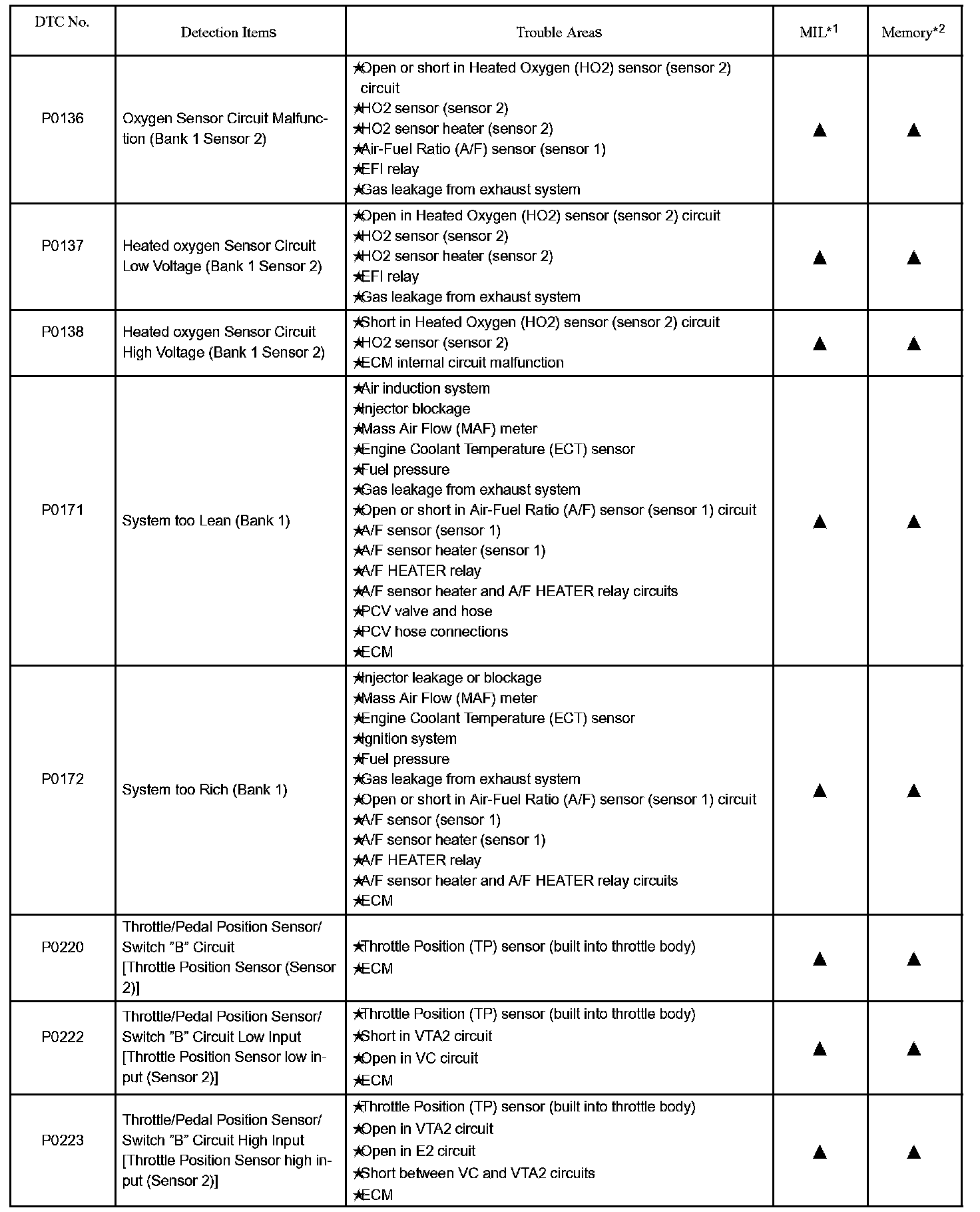 P0136 - P0223: