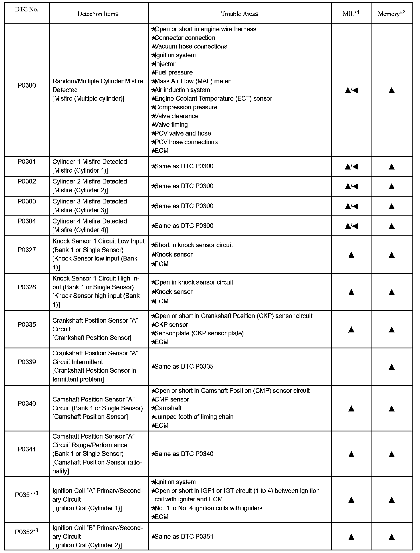 P0300 - P0352: