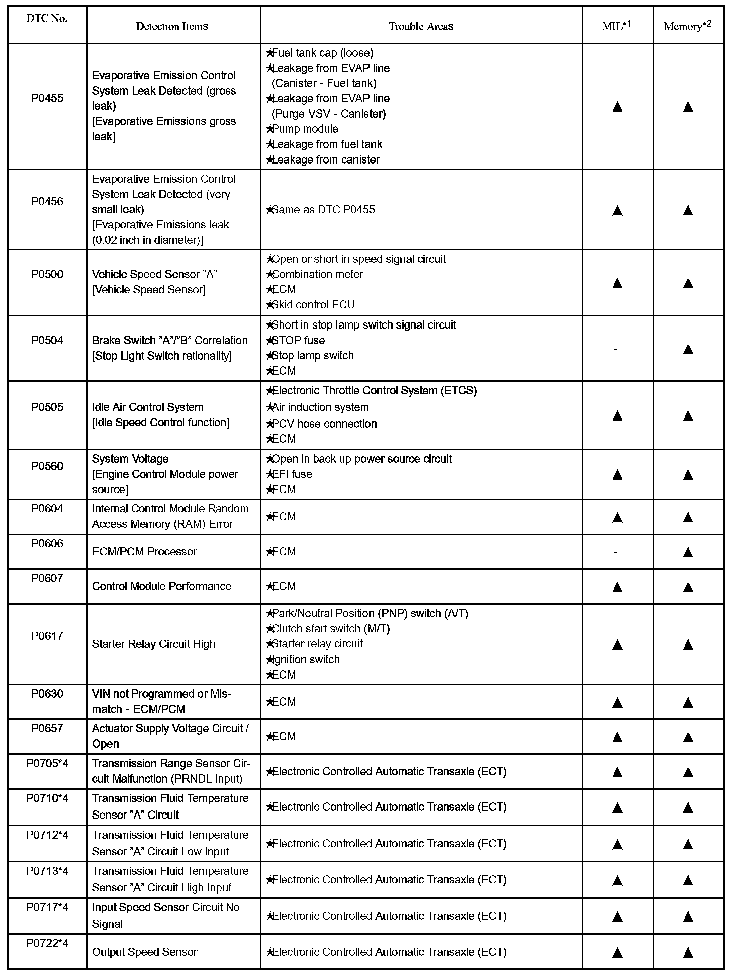 P0455 - P0722:
