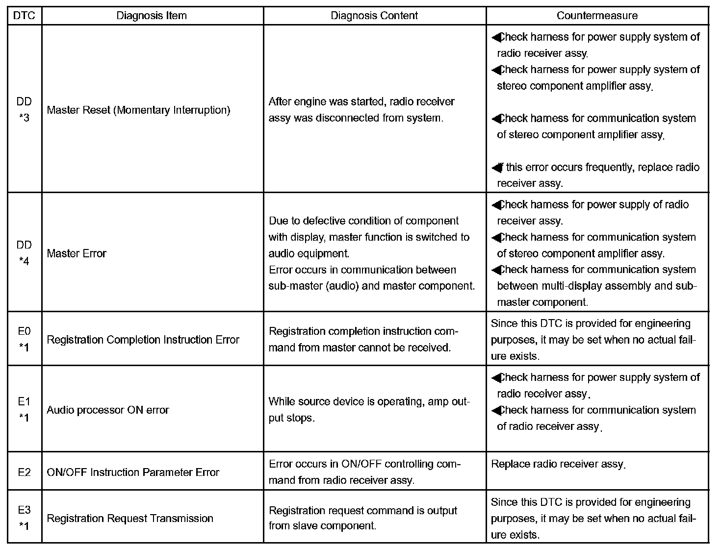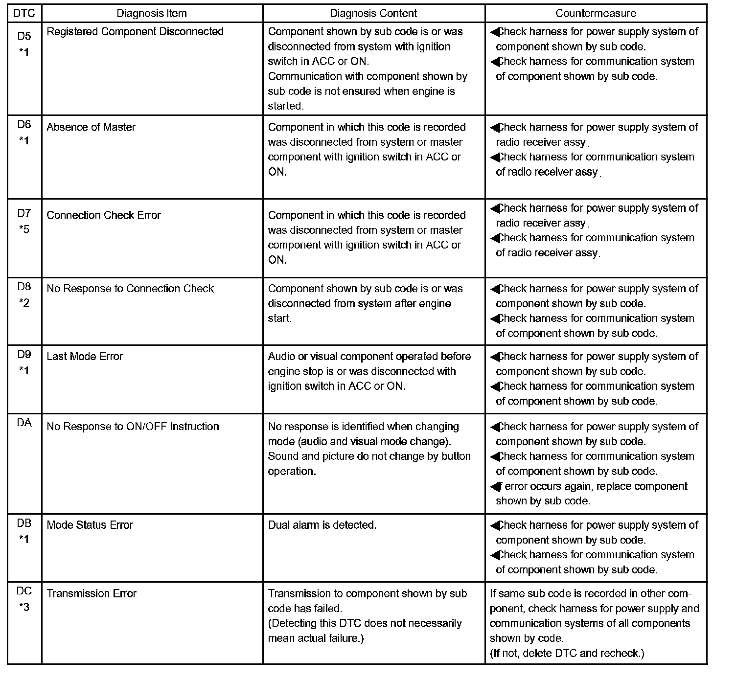 - *4: If the device is reported as not existing during verification, check the power source circuit and AVC-LAN circuit for the device.