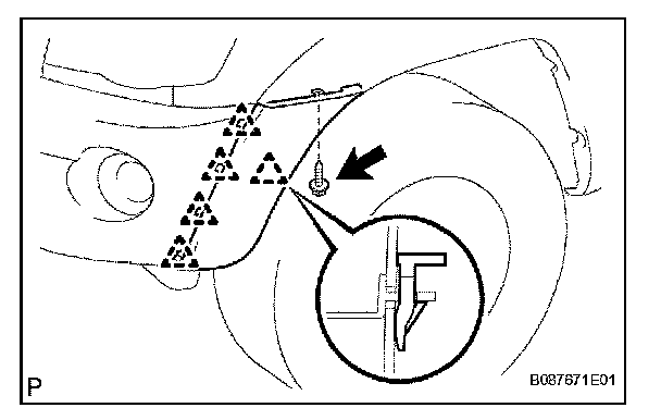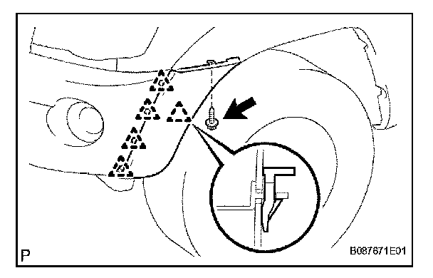 a. Remove the 2 screws and clip, and open the front fender liner.