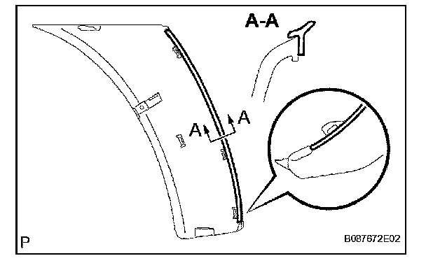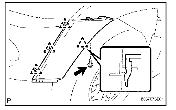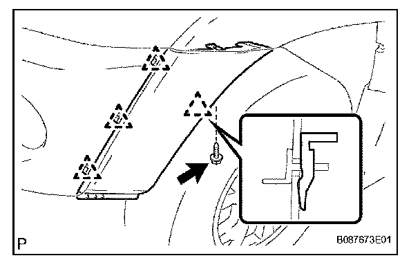 1. Install new front spoiler side protector in the position shown in the illustration.