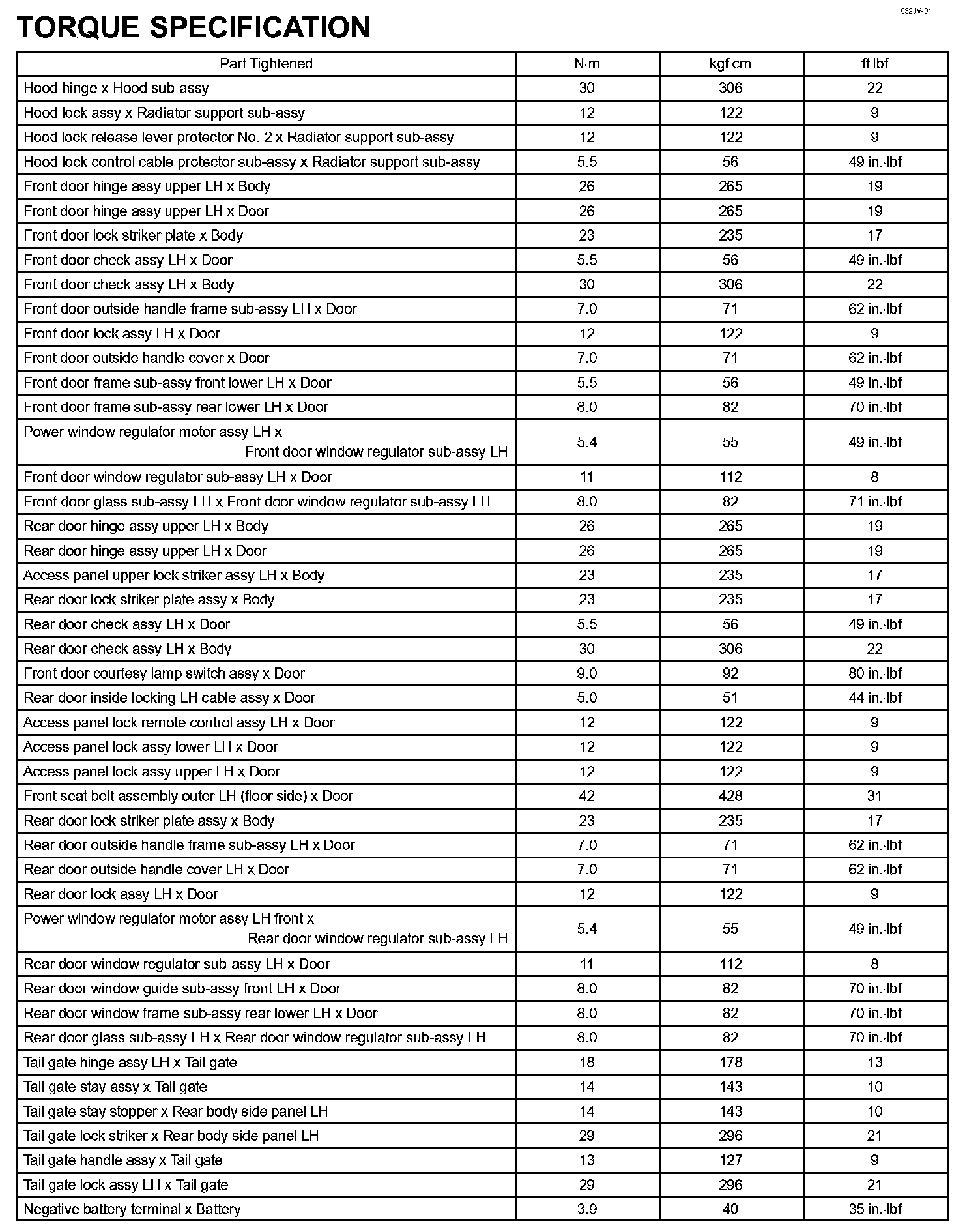 Engine Hood/Door - Torque Specification: