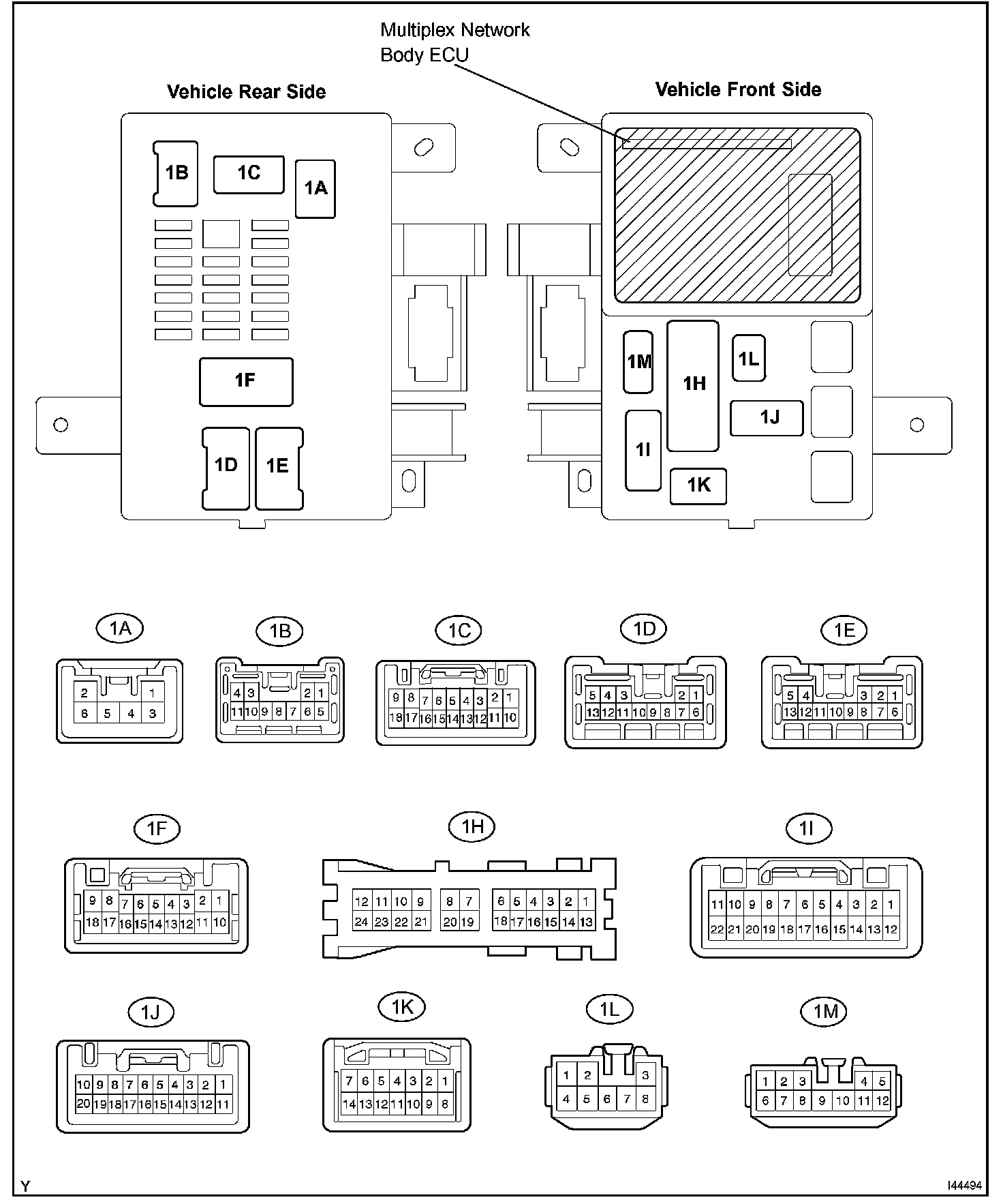Terminals Of Control Module/Pinouts - Check Driver Side J/B Assy (Multiplex Network Body ECU) Part 1: