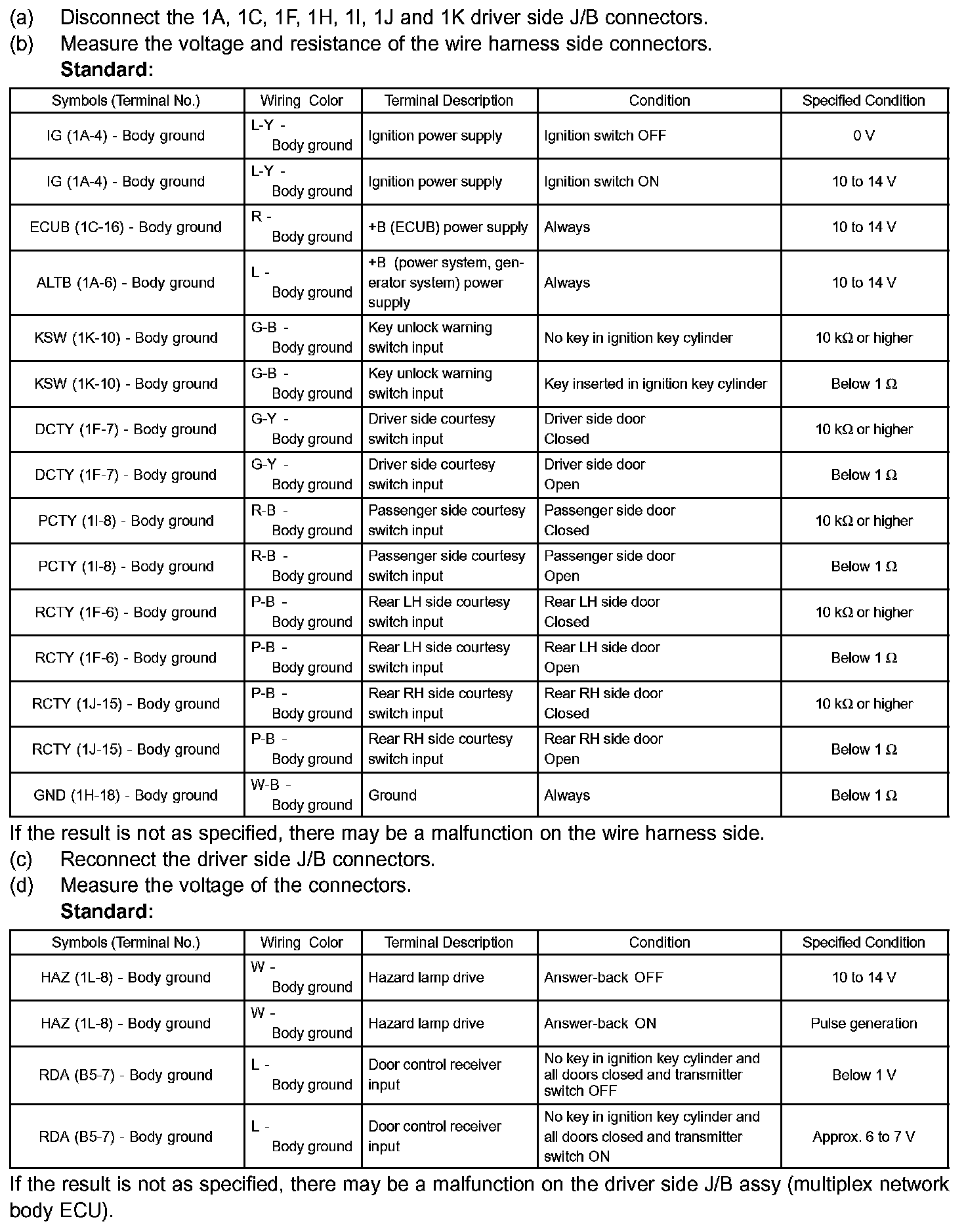 Terminals Of Control Module/Pinouts - Check Driver Side J/B Assy (Multiplex Network Body ECU) Part 2: