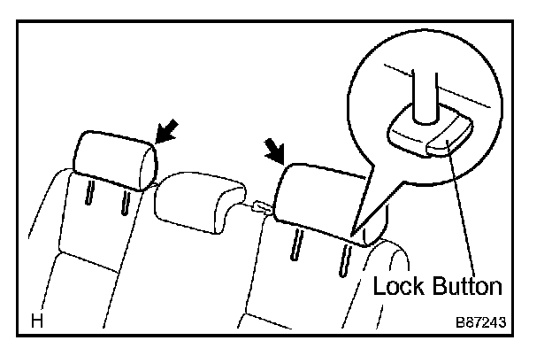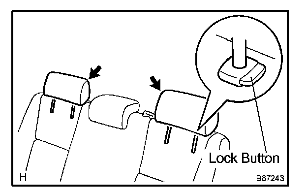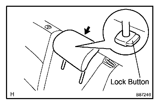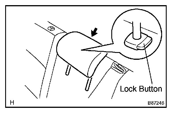 a. Disengage the lock button of the front seat headrest support and remove the front seat headrest.