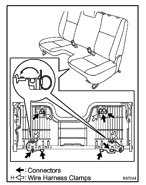b. Using a clip remover, remove the 4 wire harness clamps.