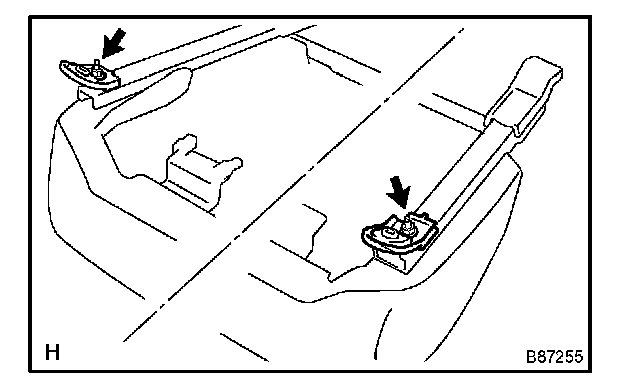 b. Disengage the 2 claws and remove the front seat headrest support.