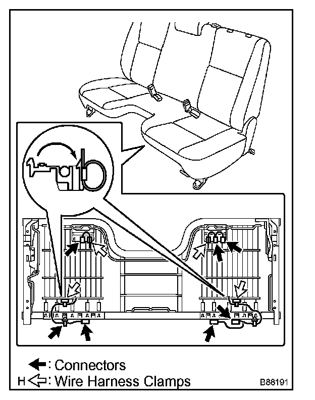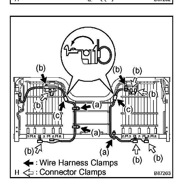 a. Install the 2 wire harness clamps and 6 connector clamps.