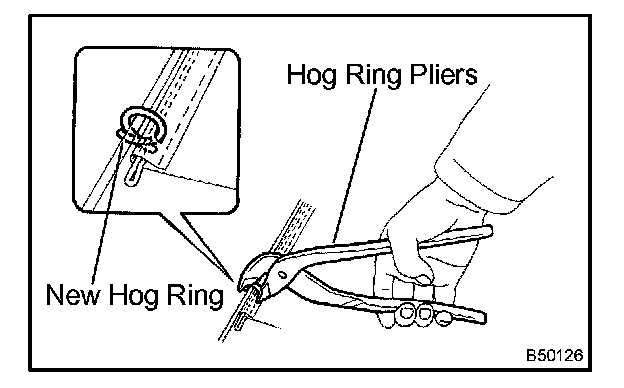 a. Using hog ring pliers, install the front seat back cover with new hog rings.