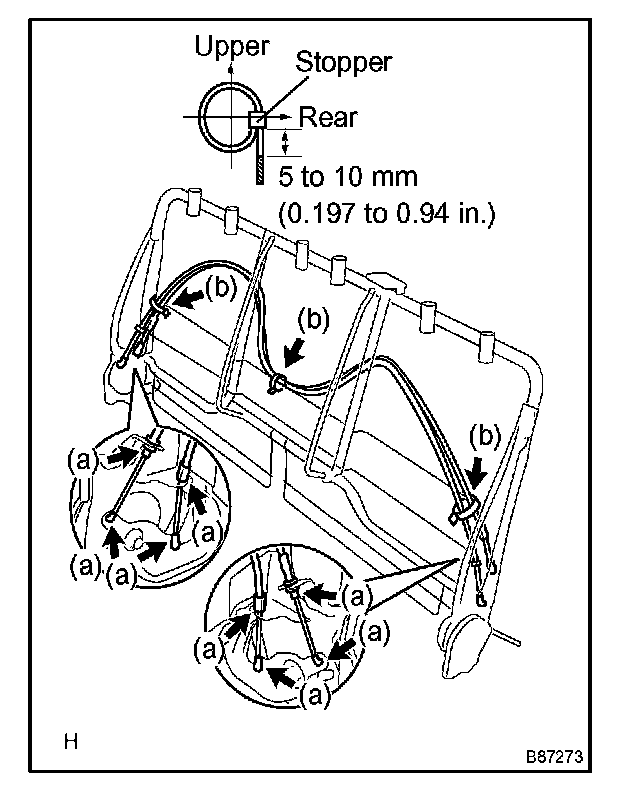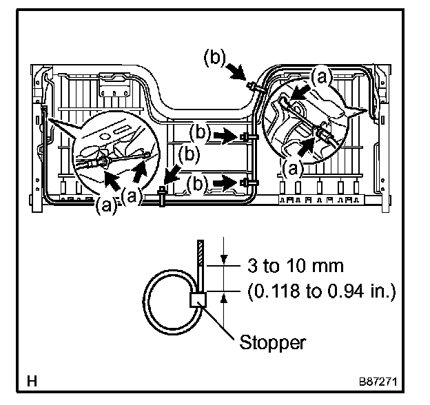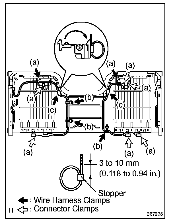 c. Cut each wiring harness clamp 5 to 10 mm (0.197 to 0.394 in.) from the stopper, as shown in the illustration.