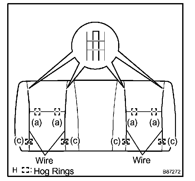 a. Using hog ring pliers, install the front seat cushion cover with new hog rings.