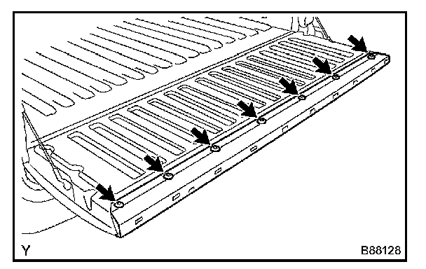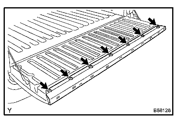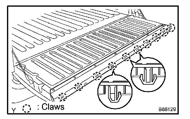 b. Disengage the 10 claws and remove the tailgate protector RH.