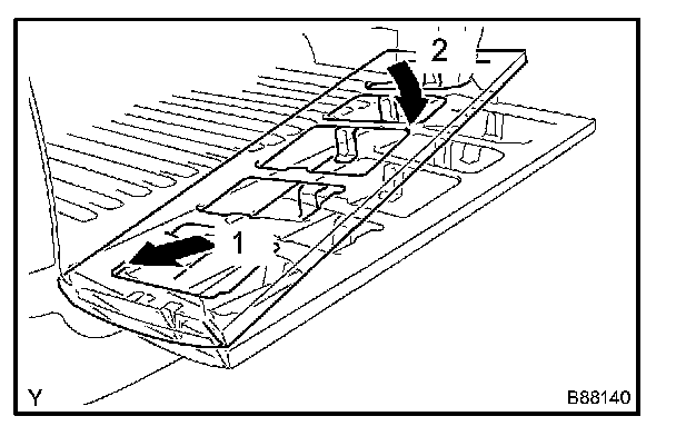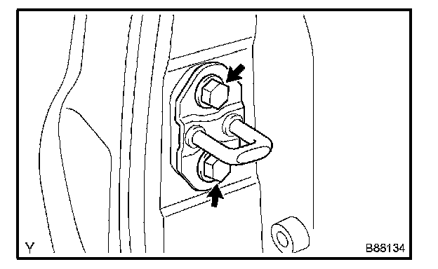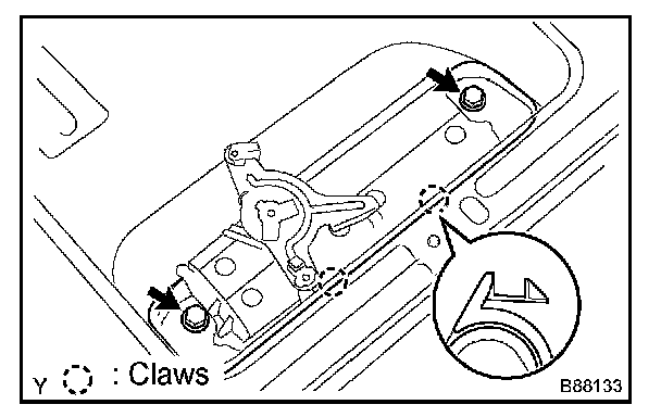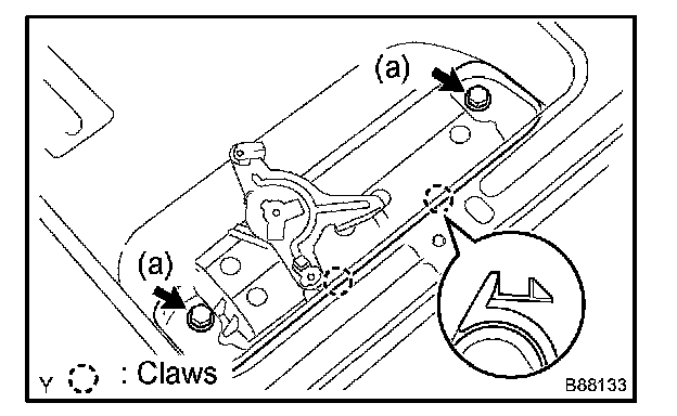 a. Engage the 2 claws and install the tailgate handle assembly with the 2 bolts.