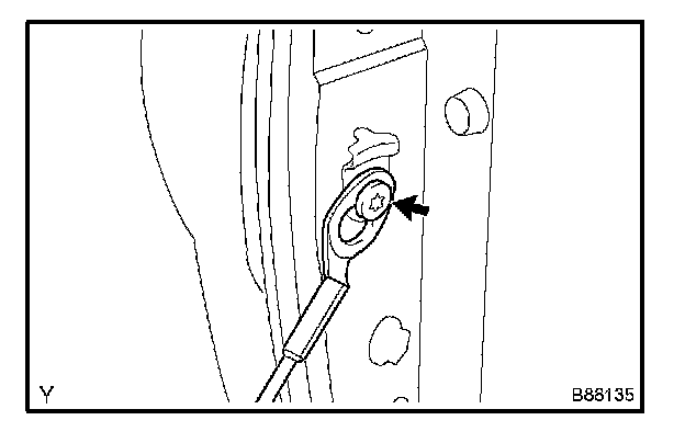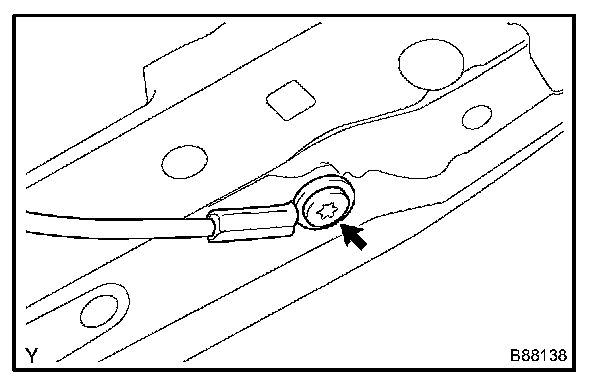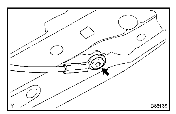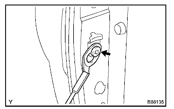 a. Using a torx(R) socket wrench (T40), remove the screw,washer and tailgate stay assembly.
