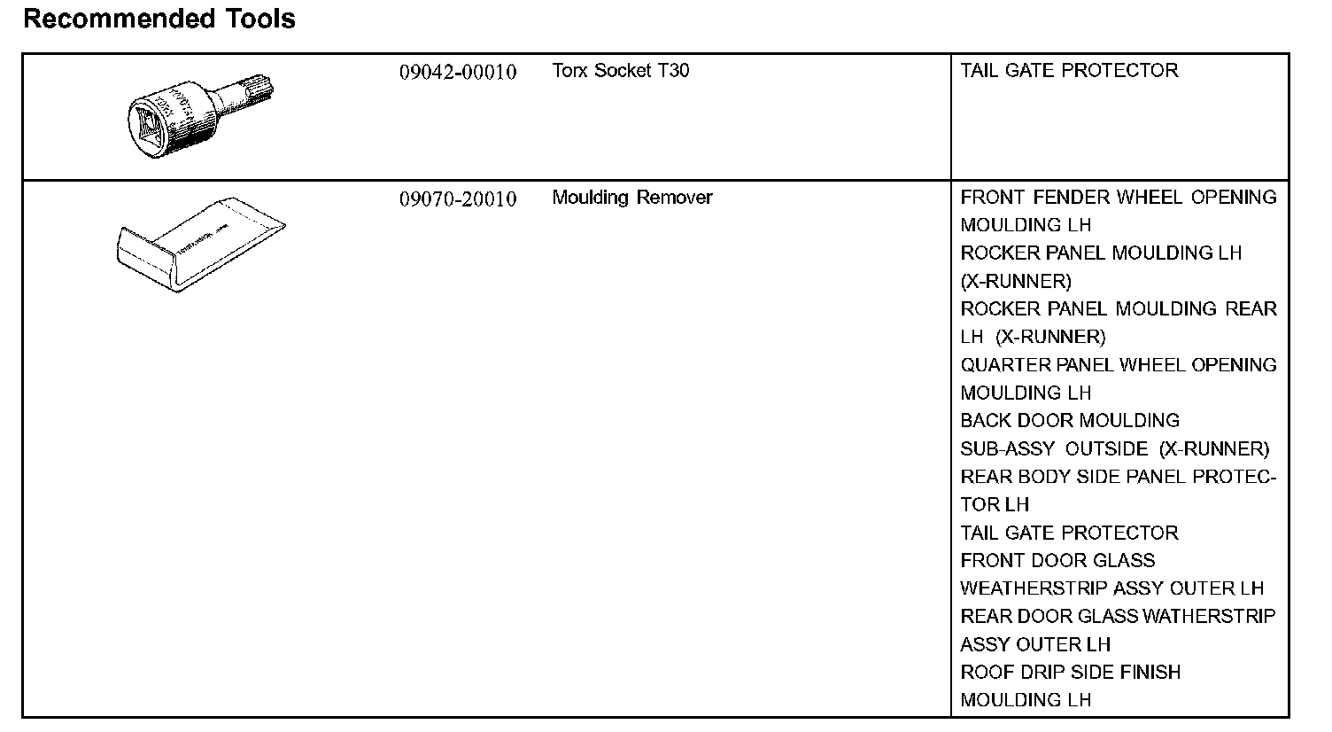 Exterior/Interior Trim - Recommended Tools:
