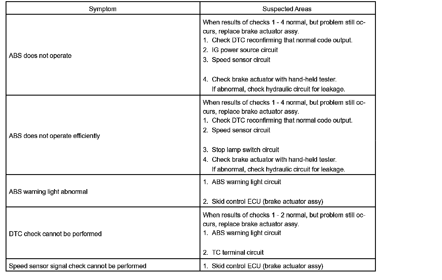 If no DTC is displayed during the DTC check but the problem still occurs, check the circuits for each problem symptom in the order given in the table and proceed to the relevant troubleshooting.