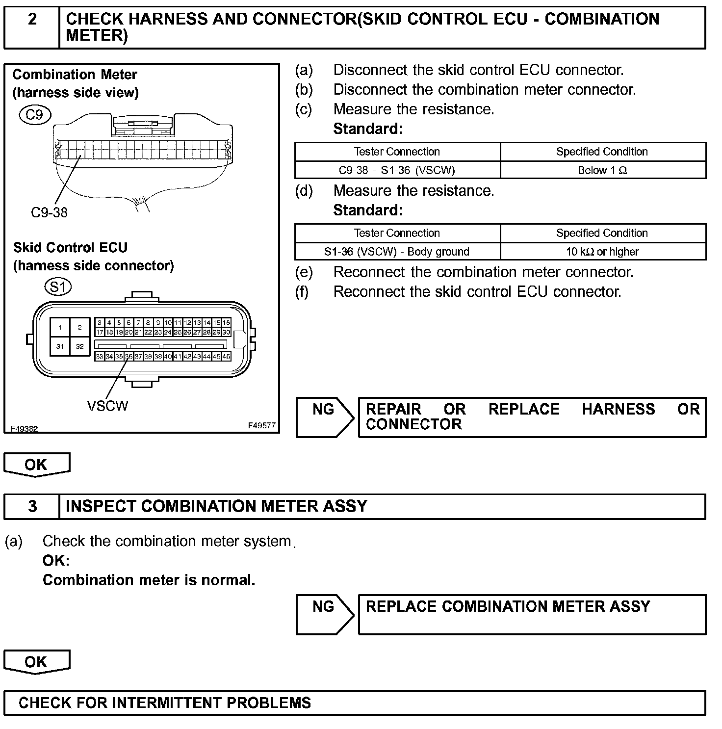 VSC TRAC Warning Light Circuit (Does Not Light Up)