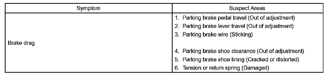 PARKING BRAKE SYSTEMPROBLEM SYMPTOMS TABLE
