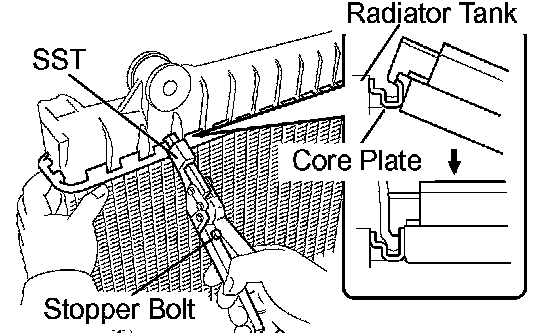 a. Straighten the core plate by gripping it with SST until stopped by the stopper bolt.