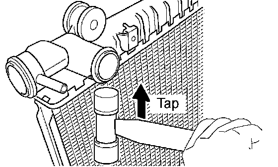 b. Tap the core plate with a soft-faced hammer until there is no gap between the core plate and radiator tank.