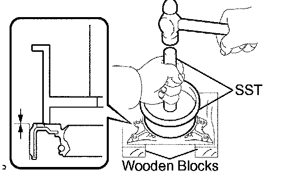 b. Using SST, tap in a new oil seal until its surface is flush with the oil seal retainer edge.