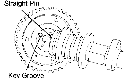 a. Put the camshaft timing gear and camshaft together by aligning the key groove and straight pin.