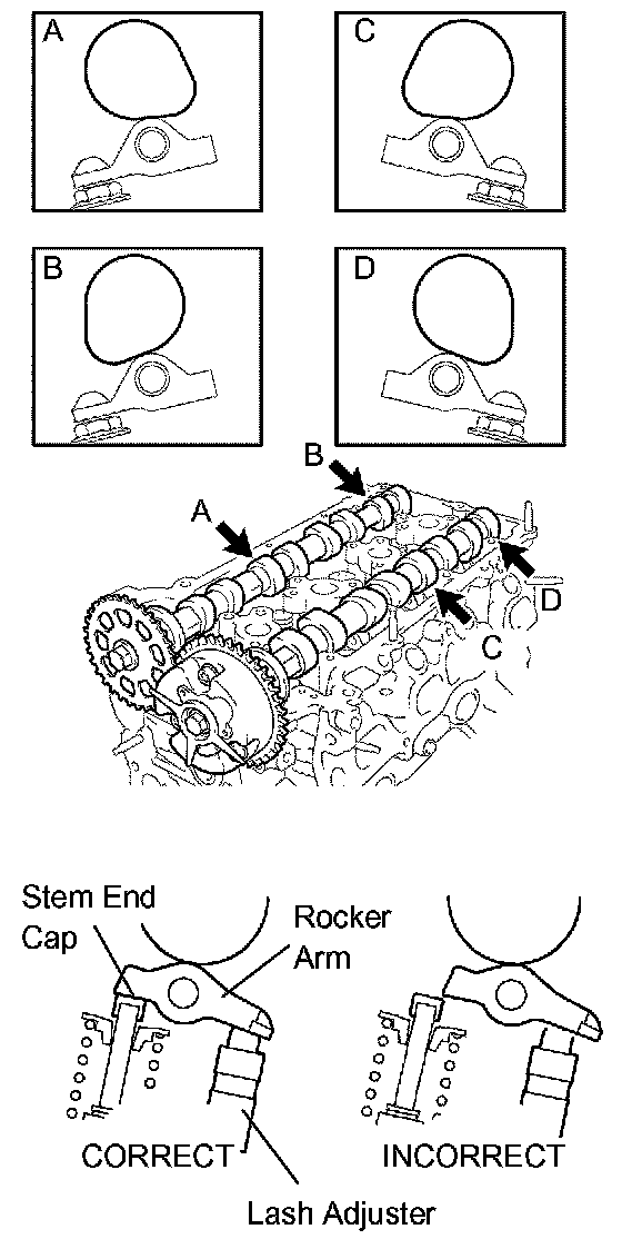 NOTICE: Before and after setting the camshaft and No.2 camshaft, firmly set the rocker arm to the lash adjuster.