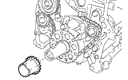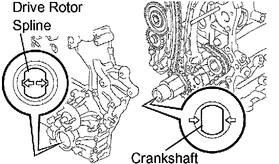 e. Align the oil pump's drive rotor spline and the crankshaft as shown in the illustration. Install the spline and chain cover to the crankshaft.