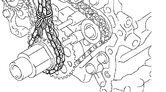 b. Use a rope to tie the chain of the crankshaft timing sprocket. Tie the rope near the sprocket.