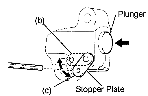 b. Move the stopper plate upward to release the lock, and push the plunger deep into the tensioner.