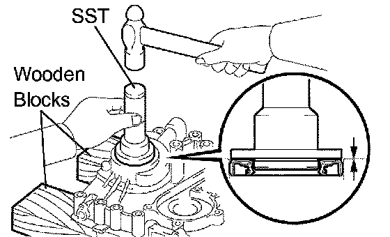 b. Using SST, tap in a new oil seal until its surface is flush with the timing gear case edge.