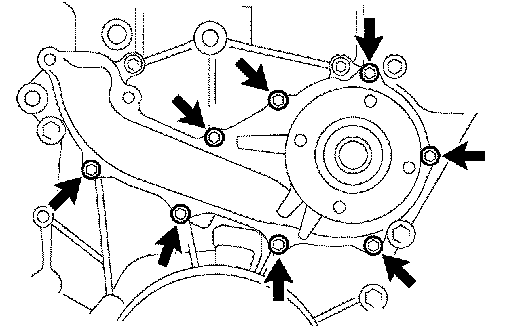 a. Install a new gasket and the water pump with the 8 bolts.