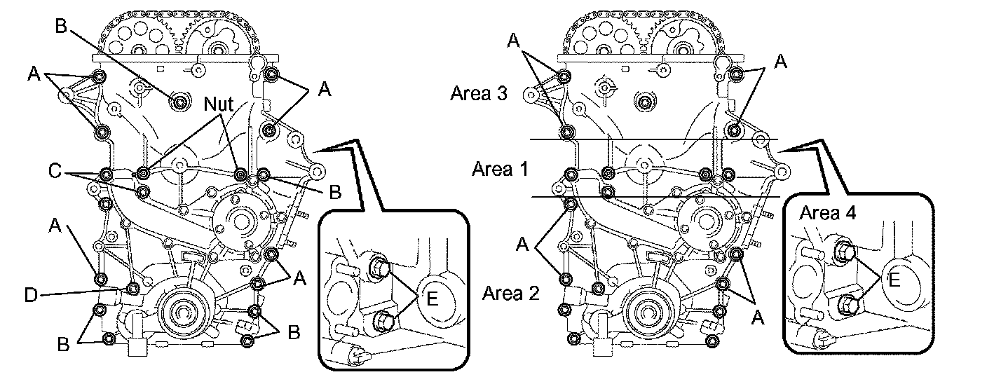 h. Fully tighten the bolts labeled A in this order: Area 2 and Area 3.