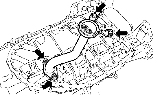 a. Install a new gasket and the oil strainer with the 2 bolts and 2 nuts.