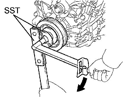 b. Using SST, install the new pulley bolt.