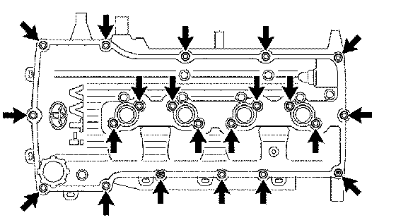 - Install the cylinder head bolt within 15 minutes after applying the seal packing.