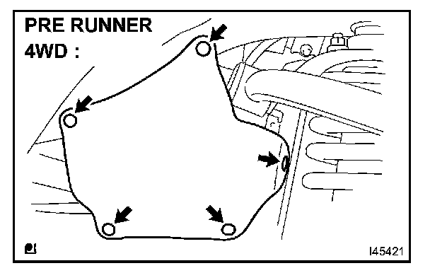 a. Using a clip remover, disengage the 5 clips and remove the front fender apron seal upper. (4WD, PRE RUNNER)