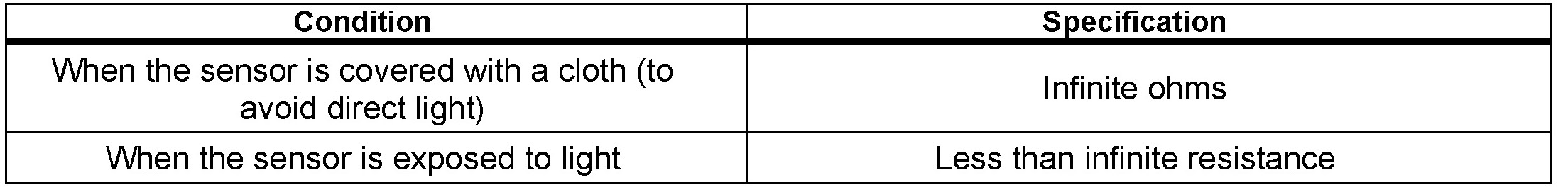b. Measure the resistance between terminals 2 and 3 of the solar sensor under the following conditions: