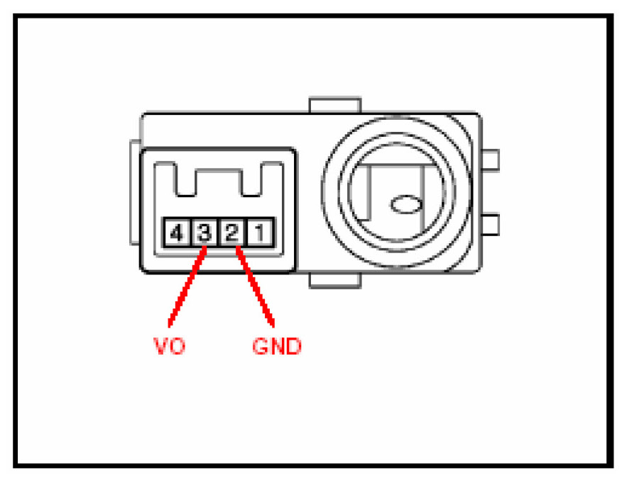 B. Measure the voltage between terminal VO (3) and GND (2) of the room humidity sensor.